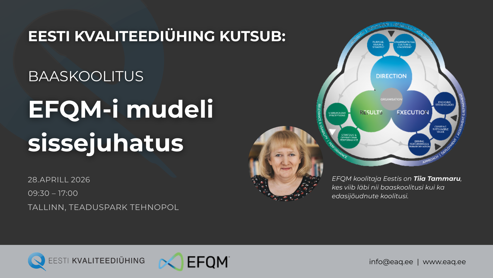 Järgmised sündmused Eesti Kvaliteediühingus: